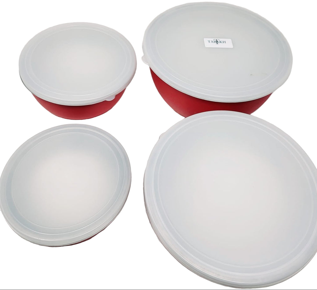 TABAKH Stainless Steel Bowls Set 4pcs, Red