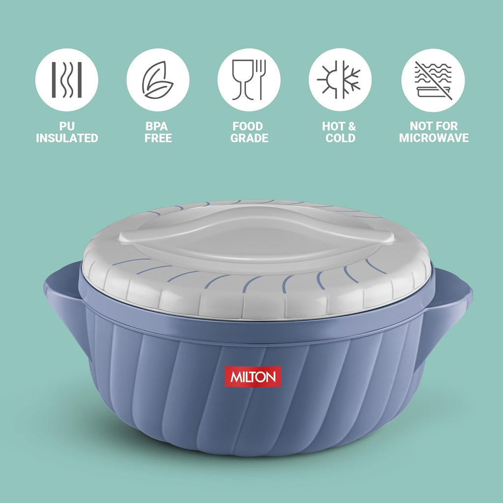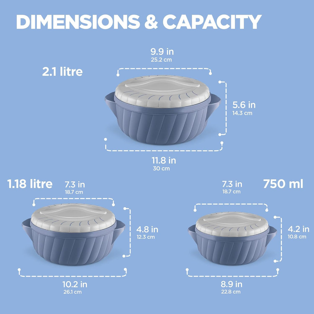 Milton Flora Regular Set Insulated Inner Steel Casserole for Roti 3Pc (750ml 1.25L & 2.1L) Hot Box for Kitchen, Hot Pot with Lid, Chapati Box, Roti Casserole, Serving Boxes, Hotcase, Stone Bue